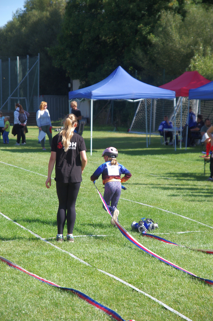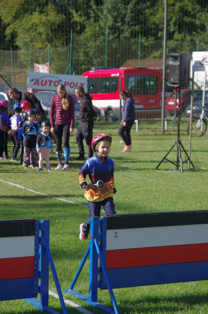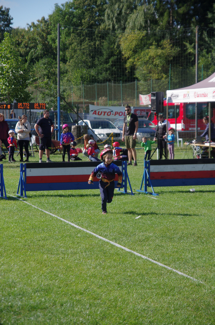 Na start jsme letos postavili osm závodníků a všichni předvedli moc pěkné výkony. Tina se v kategorii přípravka dívky prosadila až na skvělé 8. místo z 35 závodnic. V té samé kategorii běžela i Zita, která sice skončila poslední, ale ukázala obrovskou bojovnost a odhodlání. Bára obsadila 22. místo ze stejného počtu závodnic. V kategorii přípravka chlapci se nám předvedli Matěj, který doběhl 26. z 39, a také Jakub, jenž bral 33. místo. Ella startovala mezi mladšími dívkami a s výsledkem 22. z 46 si vedla velmi dobře. Vilda se v kategorii mladší chlapci umístil na 30. místě z 45 závodníků a Tomáš skončil na 39. místě.